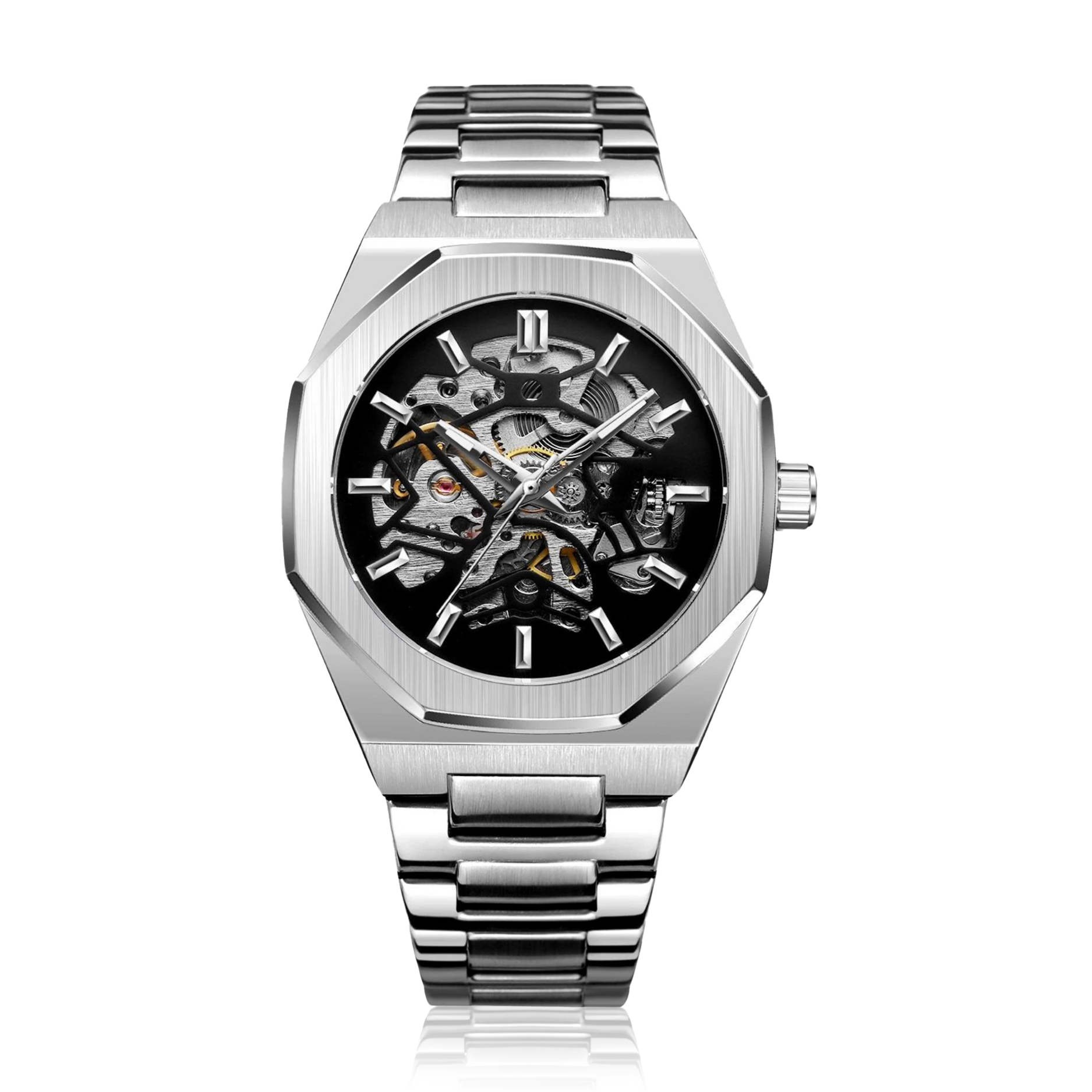 Feitos em Aço Inoxidável e vidro em Safira somado a um acabamento escovado, cada relógio oferece resistência e elegância.